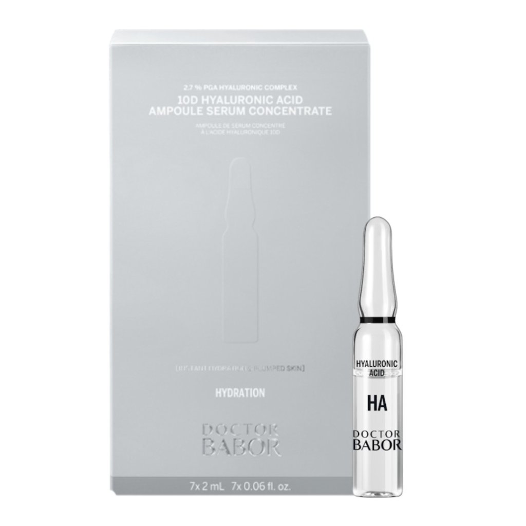 - DOCTOR BABOR 10D透明質酸安瓿結合了5種不同大小的透明質酸,以提供強效表面水合作用